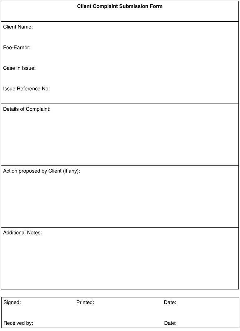 If you have a complaint that cannot be resolved simply by talking to a partner informally, please contact us with details using the Client Complaint Submission Form (see Annex 2A).